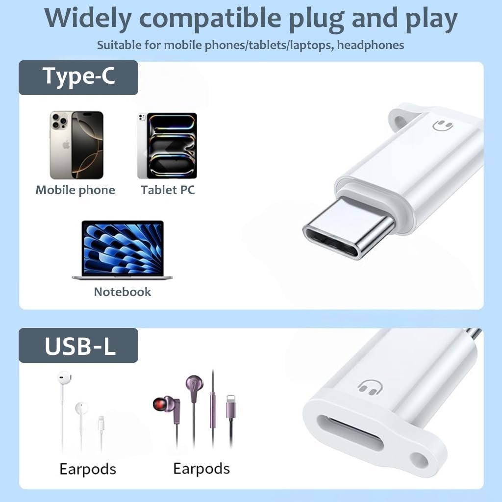 SEAMLESS CONNECTION TYPE C EARPHONES: This type c earphone adapter effortlessly bridges the gap between USB-C devices and UBS-L earphones, ensuring compatibility and superior performance. Perfect for users upgrading to USB-C devices, type c connector maintains high-quality audio and seamless functionality for music, calls, and more. Ideal for anyone transitioning between for multi devices