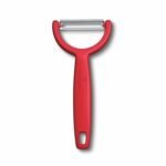 Victorinox Swiss Made Stainless Steel Swiss Classic Ypso Peeler, Serrated Double Edge Peeler for Professional and Household Kitchen, Red, Long Fruit & Vegetable Peeler | 6.0963.1