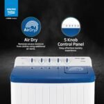 A 5-star rated semi-automatic twin tub washing machine with air dry function, 5-knob control method, Double Waterfall, PureStream pulsator wash, decent look, and durable body offers a comprehensive laundry solution. Its attractive design enhances the aesthetics of your laundry area, while the sturdy construction ensures long-lasting performance. The air dry function and efficient washing features save time, energy, and water. The 5-knob control system makes operation simple for everyone. Overall, this washing machine combines style, durability, and functionality, providing a reliable and efficient laundry experience for years to come.