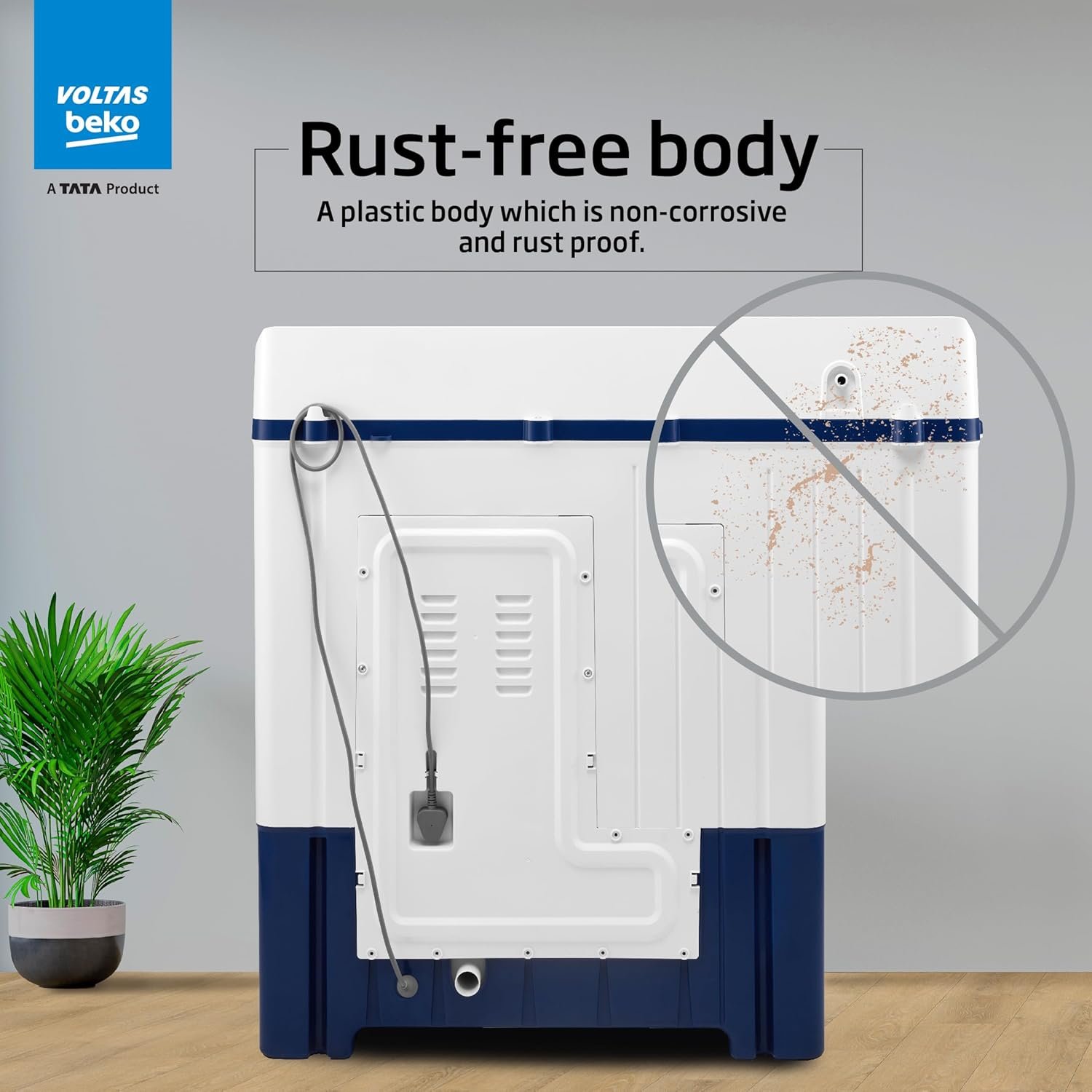 Drum / Pulsator type & Body material: Plastic body, Special Pulsator & Plastic drum providing durability, rust resistance, and a gentle surface for clothes during washing