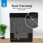 Drum / Pulsator type & Body material: Plastic body & Plastic drum providing durability, rust resistance, and a gentle surface for clothes during washing
