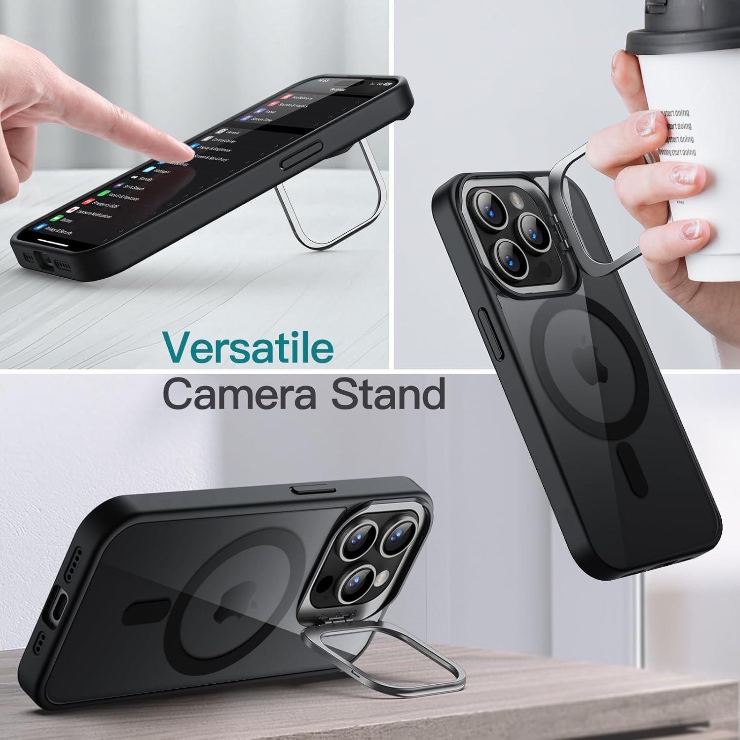 Adjustable Stash Stand: positioned around camera frame to stay hidden when folded away while keeping MagSafe ring 100% unobstructed; enjoy a freely adjustable and stable view for watching shows whenever