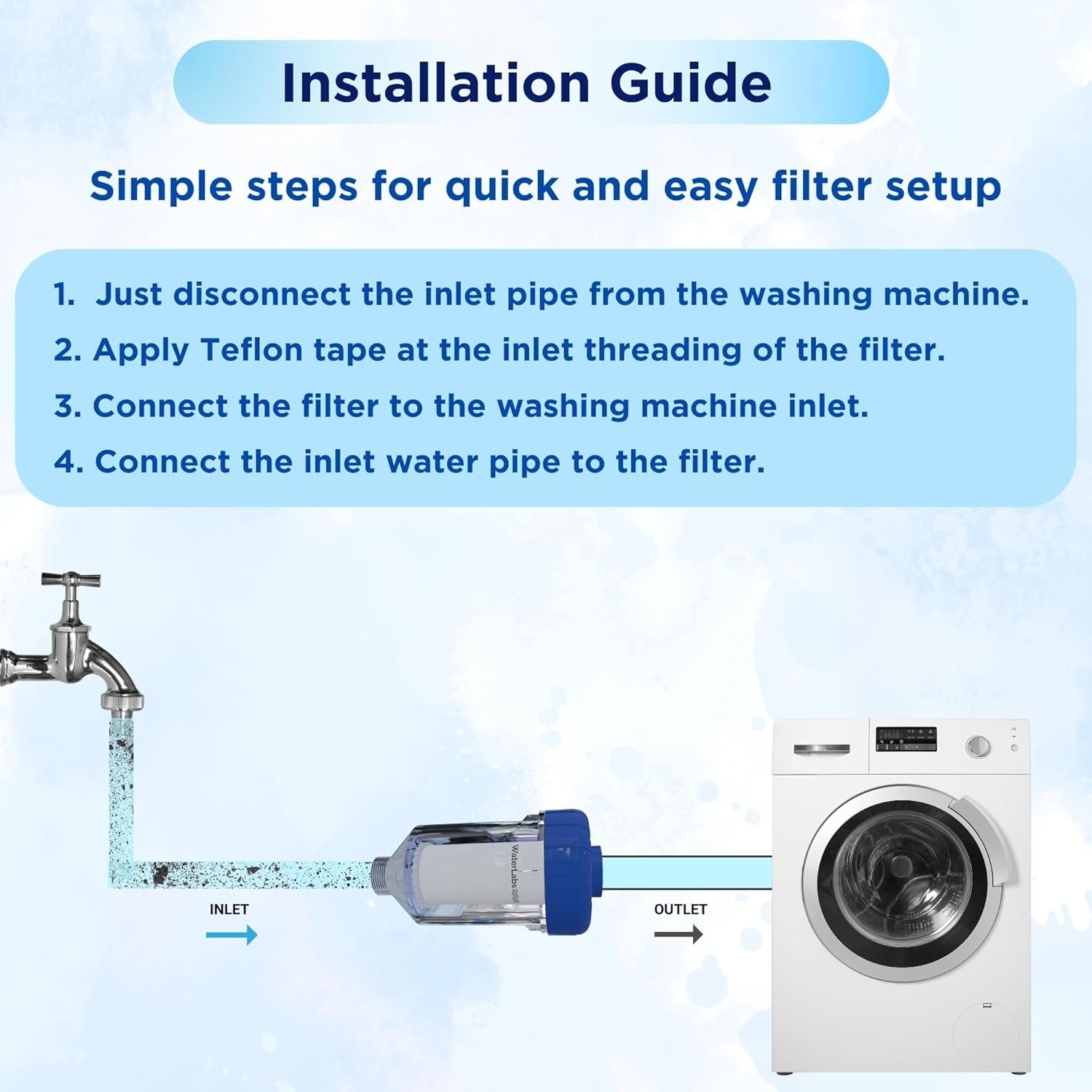 Dual Protection – Effectively filters out sediments, dirt, rust, and debris, and softens hard water to protect your washing machine and clothes.