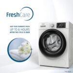 This washing machine comes with Fresh Care + technology, which keeps passing steam and rotating your clothes for up to 6 hours after the completion of wash cycle. This way, your clothes remain odour free, even if you forget to take it out on time.