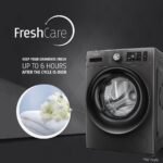 This washing machine comes with Fresh Care + technology, which keeps passing steam and rotating your clothes for up to 6 hours after the completion of wash cycle. This way, your clothes remain odour free, even if you forget to take it out on time.