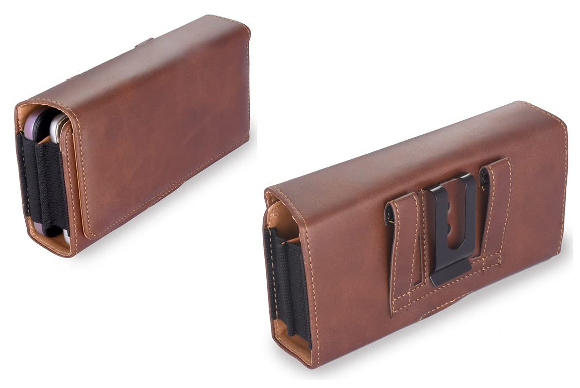 Premium Synthetic Leather Double Mobile Pouch with Belt clip/Belt loop . Light Weight, Durable, and Soft. Protect your Phone against Screen Damage and other accidental damages. Belt Clip Case with safety belt loops, never worry about case coming off belt