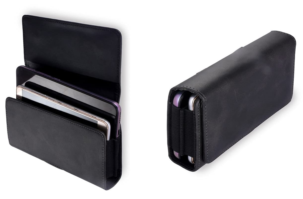 Dual Phone Holster Pouch for two phones combinations (Each Phone Measuring 6.6 in x 3.26 in x 0.47 in or Less), Fits 2 Phones with Thin Case