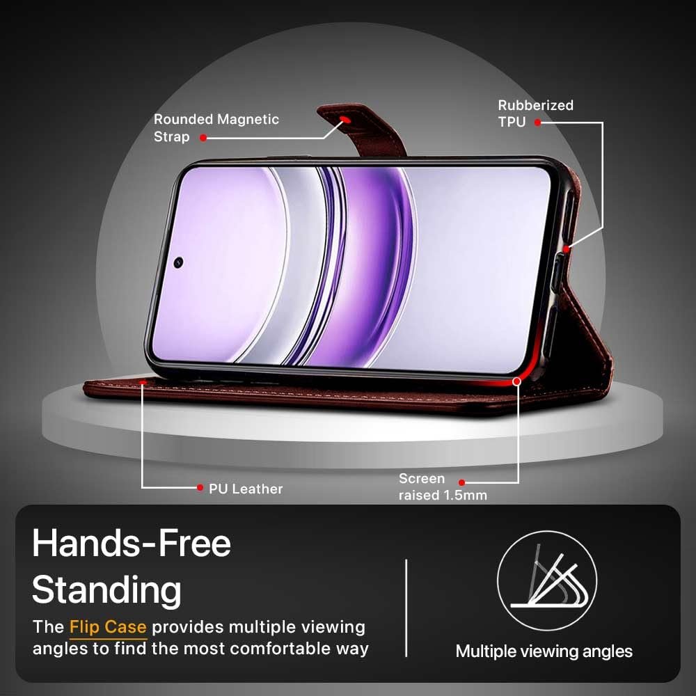 WOW IMAGINE Shock Proof Flip Cover Back Case Cover for Realme 14x 5G | Realme Narzo 80x | Realme P3x (Flexible | Leather Finish | Card Pockets Wallet & Stand | Chestnut Brown)