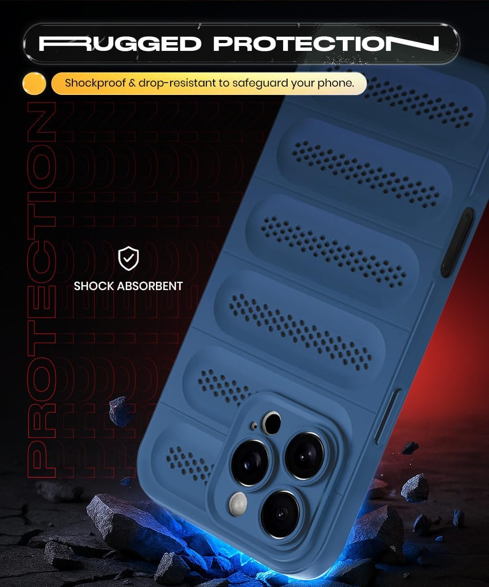 WOW IMAGINE Ultimate Silicone Back Cover Case for iPhone 16 Pro Max | Heat Dissipation Thin Soft TPU | 360° Camera Protection | Breathable Cooling Holes – Deep Blue