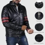 Elevate your style with the Men’s Red Stripe Genuine Leather Jacket, designed for those who appreciate classic biker aesthetics and premium quality. Crafted from 100% genuine leather, this jacket offers durability and a luxurious feel that only gets better over time. The bold red stripes along the sleeves add a stylish touch to a timeless silhouette, making it perfect for adding a modern edge to any outfit.