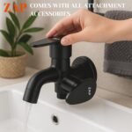 ZAP Prime Two-in-One Bib Cock | Complete Brass 2-Way Tap for Washing Machine with Water Saving Aerator/Brass Tap for Bathroom Kitchen | Wall Flange Mount Installation | Black Finish | Set of 1