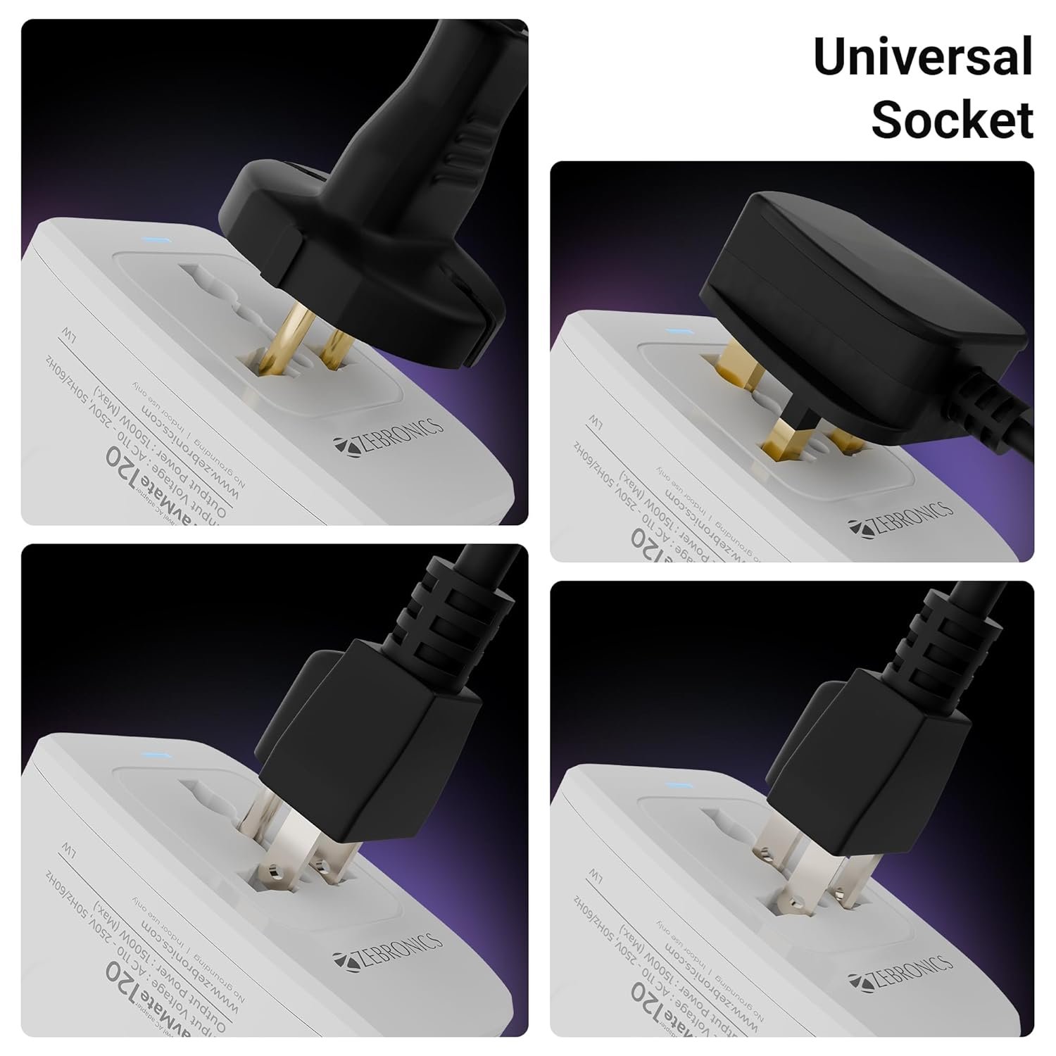 Universal Socket: Featuring a universal socket, it accommodates plugs from multiple countries for worldwide charging convenience.