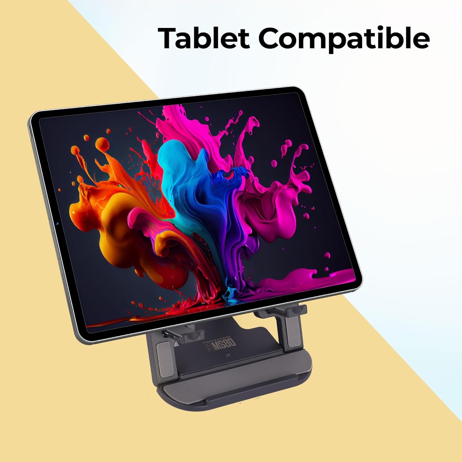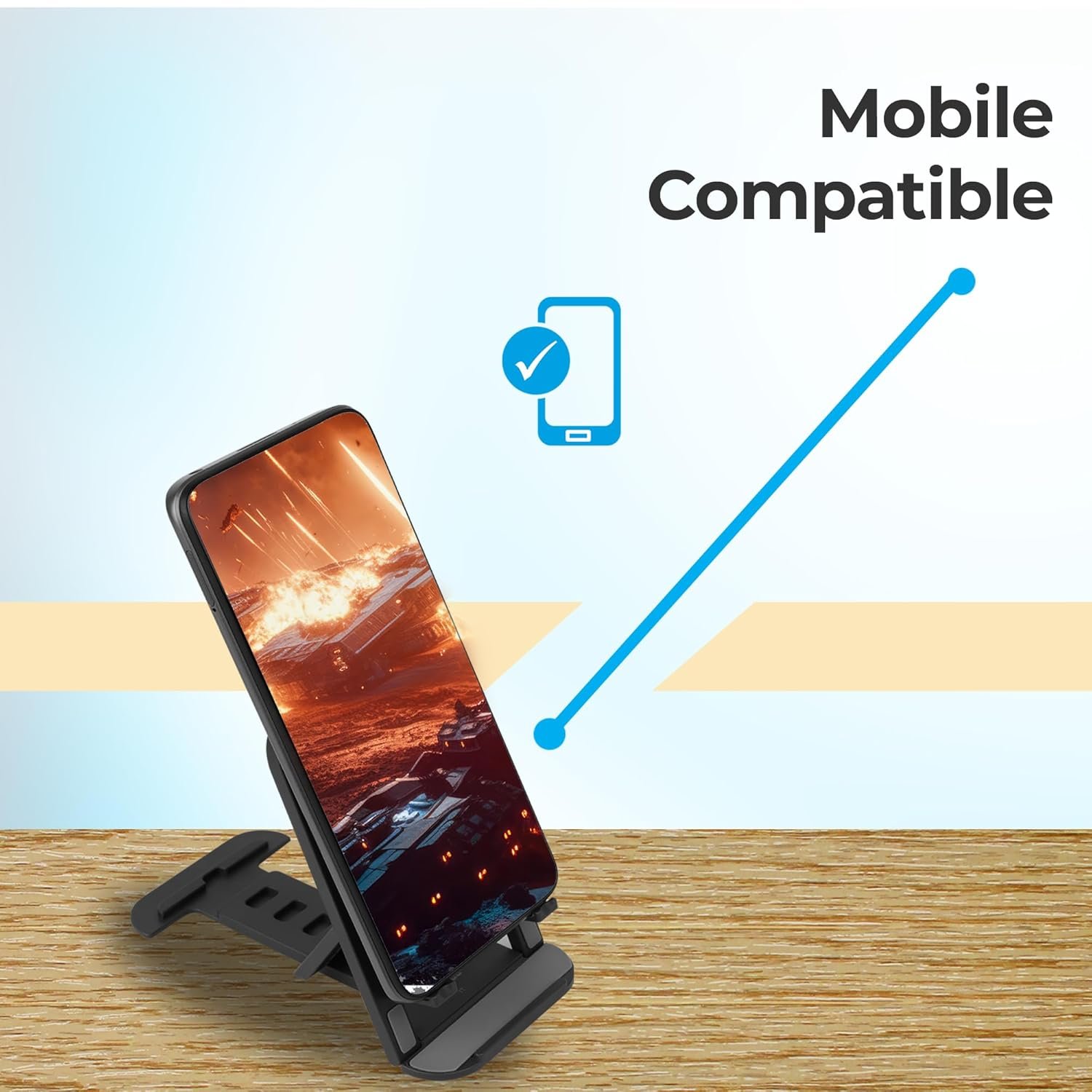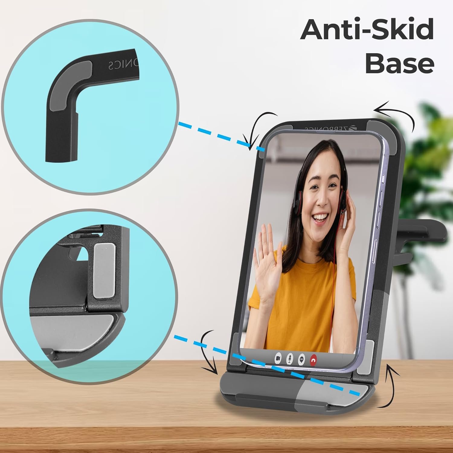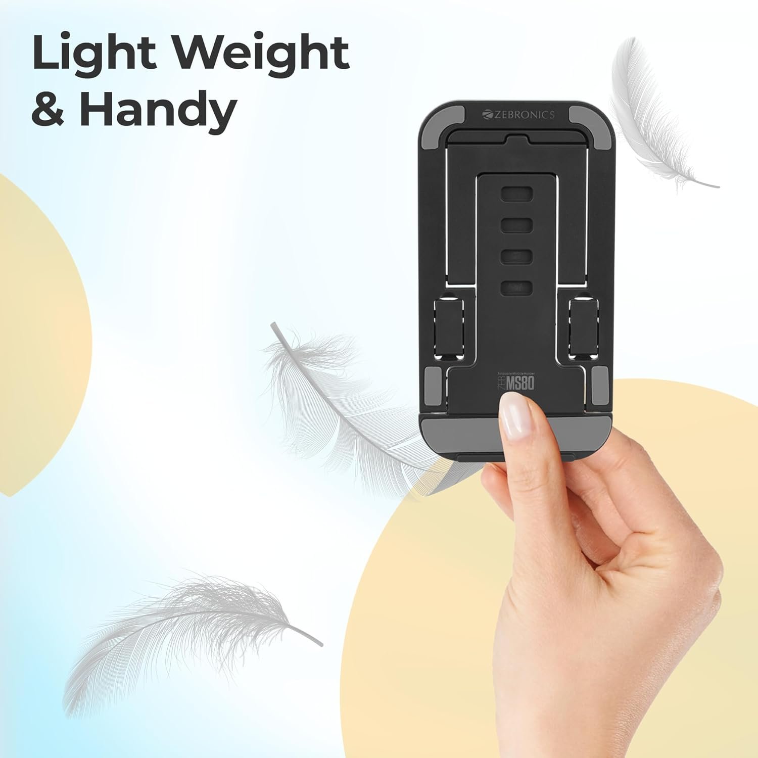 ZEBRONICS MS80 Mobile Holder with Adjustable Height, 10°- 50° Multiangle Adjustment, Foldable Design, Anti Skid Base, Matte Finish, Lightweight and 4 Adjustable Levels (Black)
