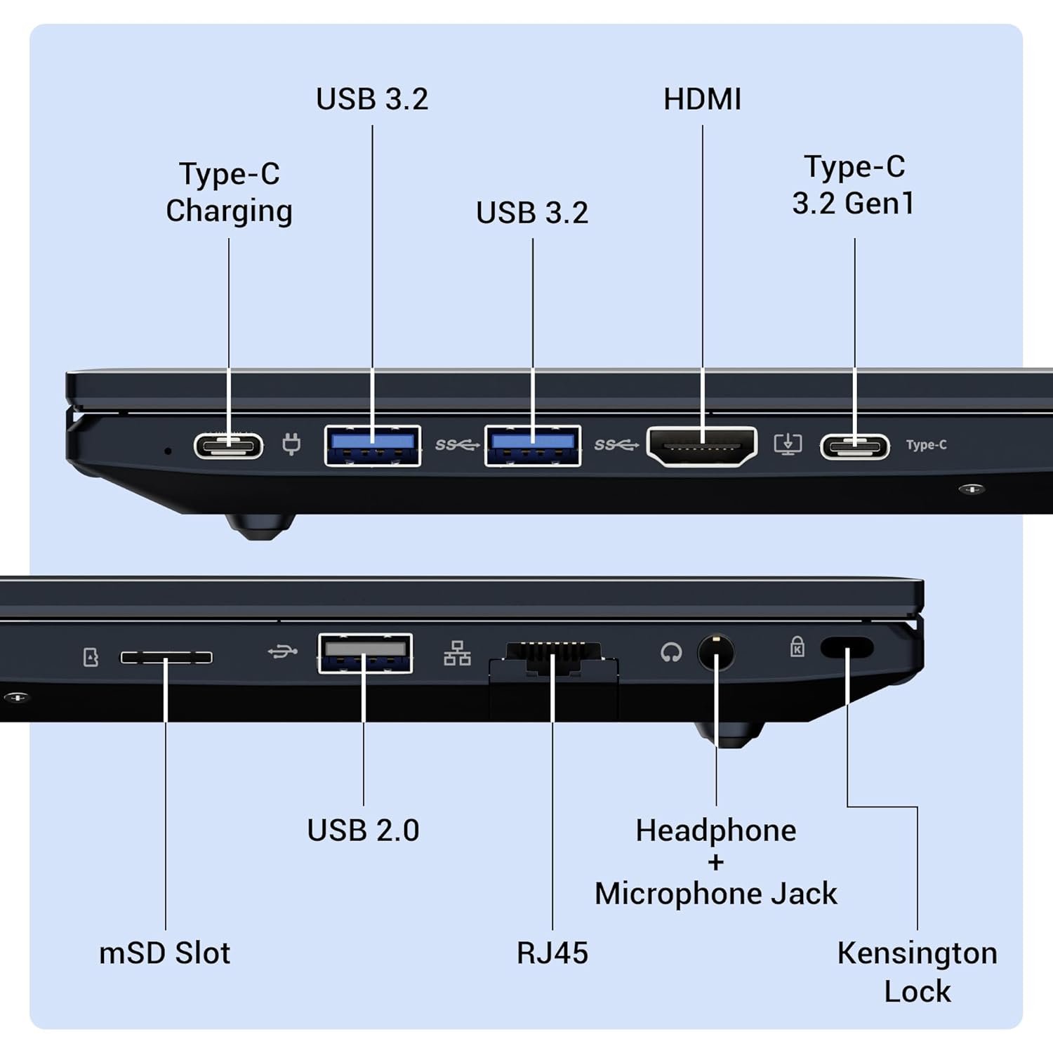 Your seamless connectivity to the laptop comes with 2x USB 3.2, 1x USB 2.0, an mSD slot, a 3.5mm headphone + mic port, 2x Type-C ports (one for charging & other Type C version 3.2 Gen 1 for super fast data transfer) and a HDMI port for video output. The Type C port is capable of providing Display output