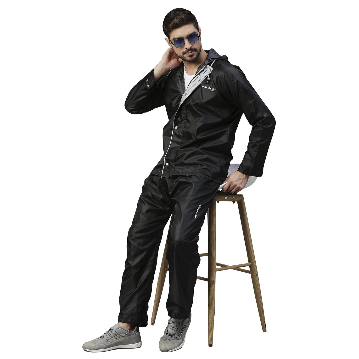 ZEEL Waterfighter Rain Coat for Men with Adjustable Hood along with inner pockets,Waterproof Rainwear Suit for Bike Riders with Polyester Jacket and Pants,WF121ECO