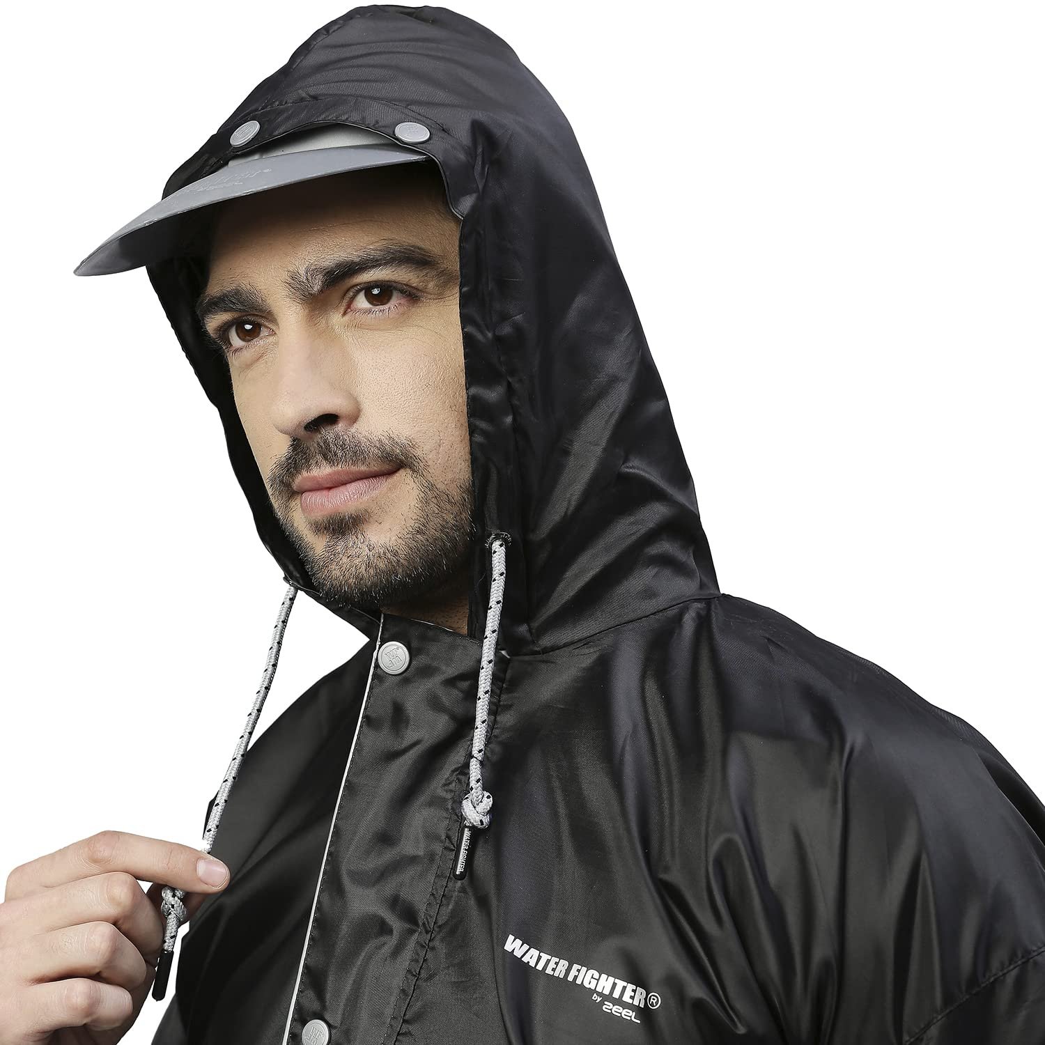 A ZEEL raincoat has an outer flap and a fastening zip closure, keeping strong winds and rain at bay. Full zip closure with an outer flap prevents water leakage and helps to block the rain.