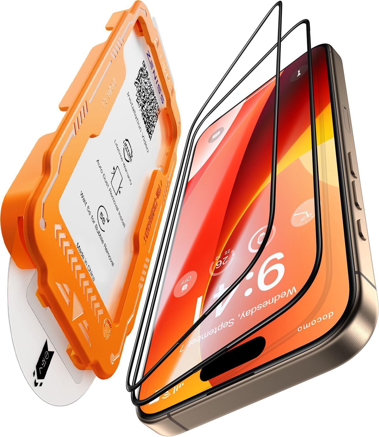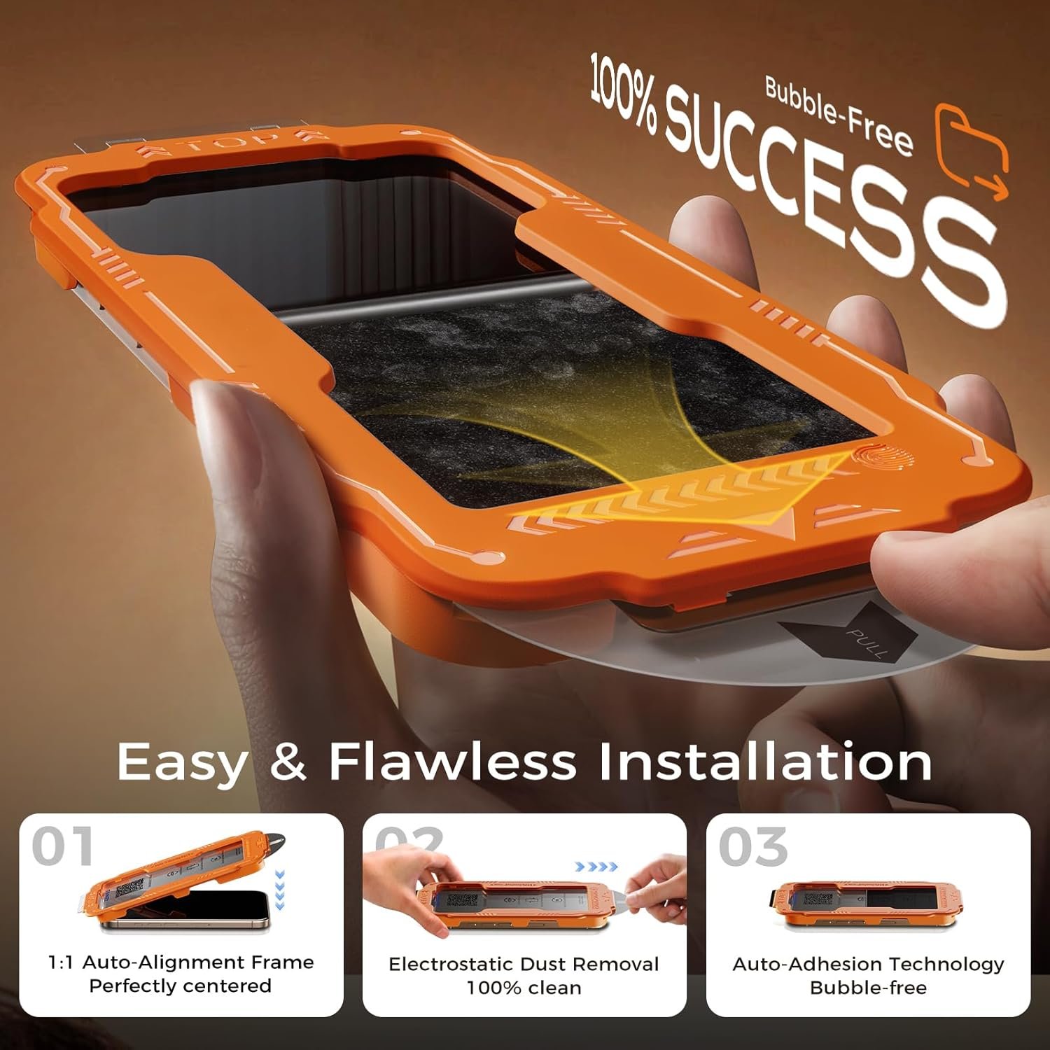 [Flawless Installation]:No bubbles. No dust. No mistakes. Featuring a 1:1 auto-alignment frame, electrostatic dust elimination, and auto-adhesion technology, this tempered glass screen protector for iPhone 16 Pro guarantees professional-level installation in seconds. Simply align, pull, and done with a 0% failure rate. Whether you’re perfectionist or installing for the first time, achieving perfection is effortless