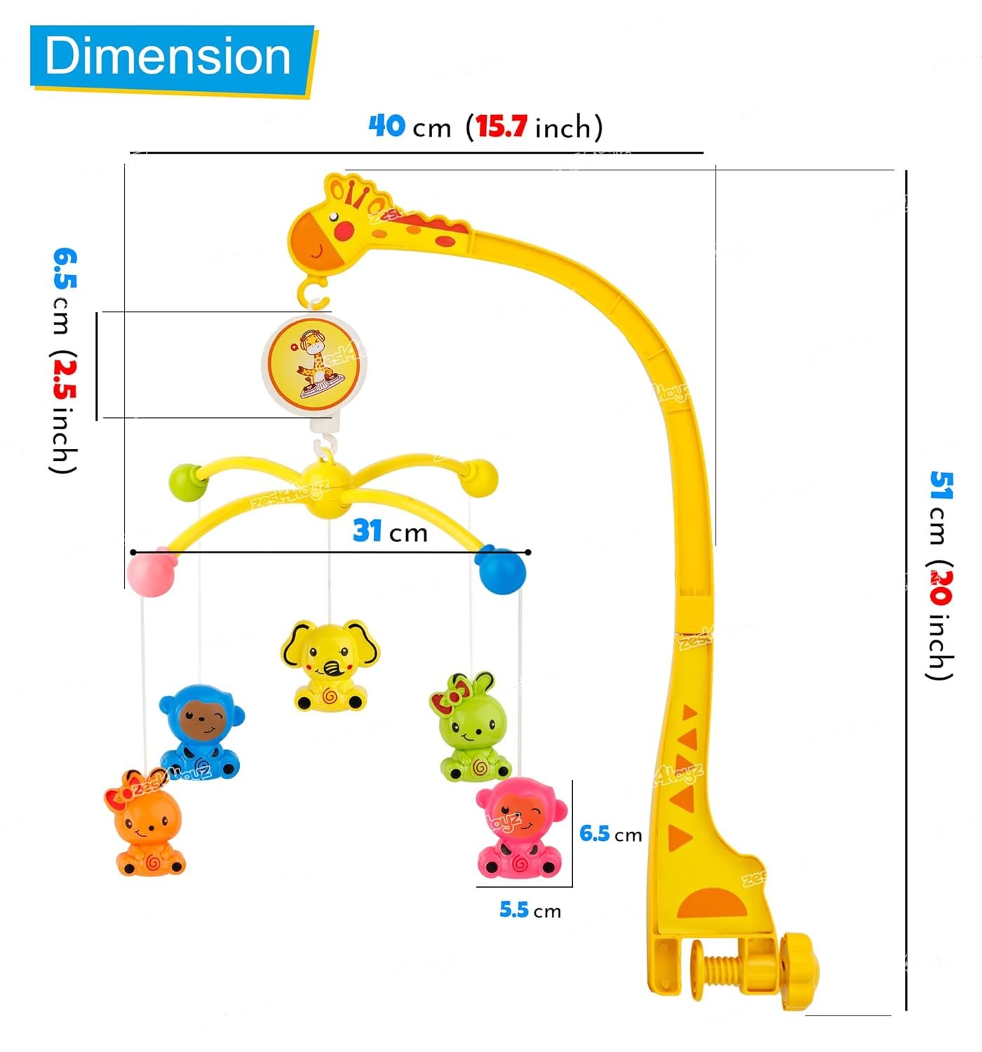 🌈 GIRAFFE DESIGN – CUTE AND ENGAGING: The fun giraffe design adds an adorable touch to your baby’s nursery. Its bright, vibrant colors and playful design make it an eye-catching addition to any crib, creating a joyful space for your baby’s early experiences with sensory and auditory stimulation.