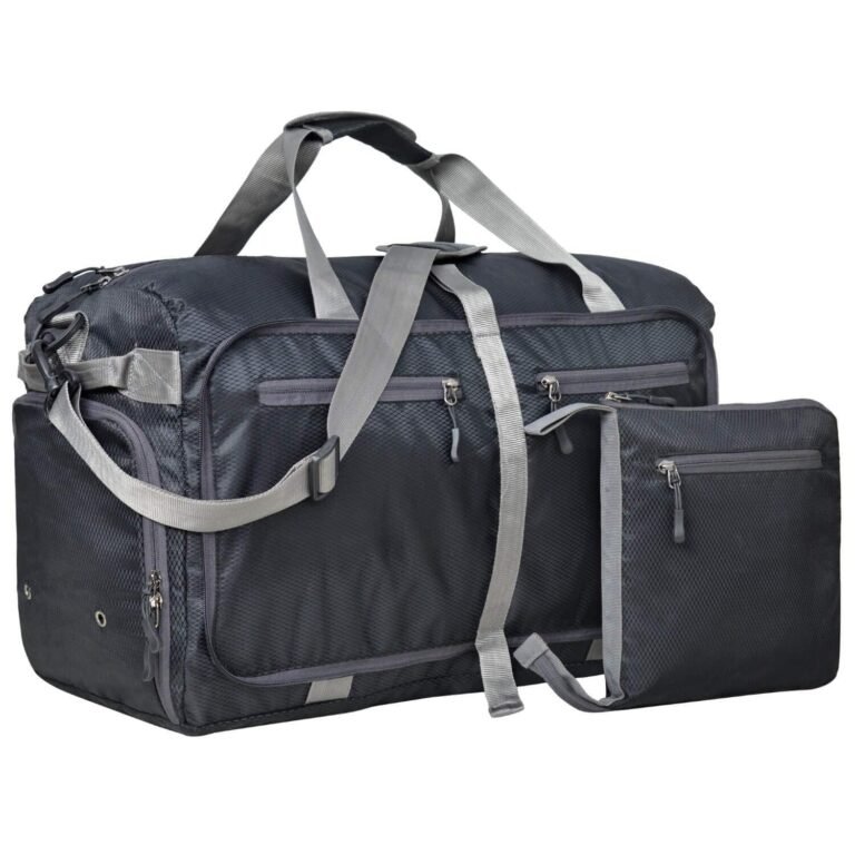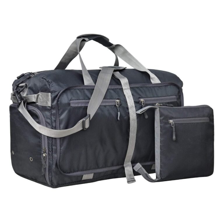 FATMUG Foldable Duffel Luggage Bag for Travel, Packing and Storage – Men and Women – 45 L, Navy Blue