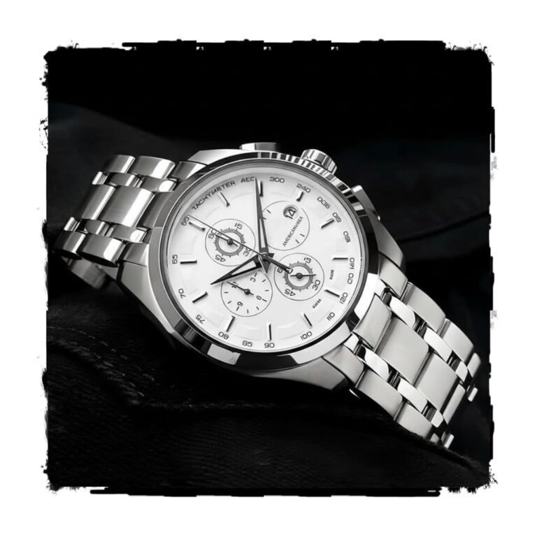 Modern Analog Watch, Silver and Black Two-Tone Stainless Steel Band, Octagonal Case, White Dial for Men
