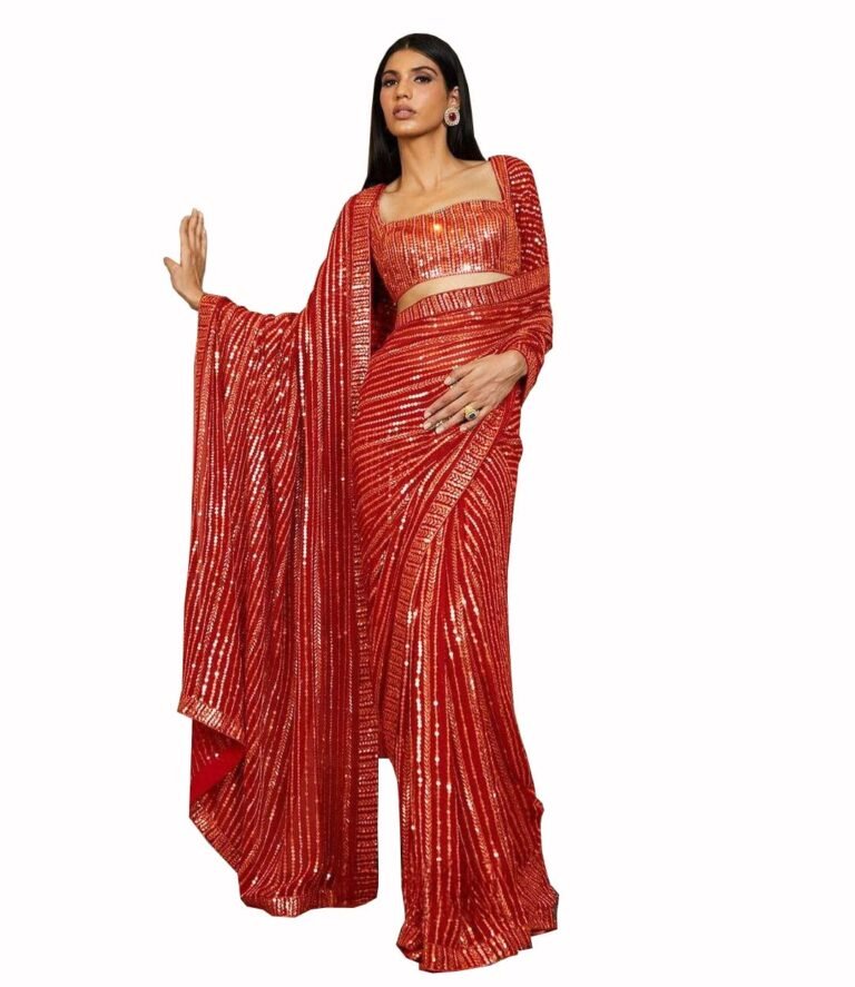 Monrav Women`s Georgette Sequins Fancy Saree With Blouse Piece (Multi color_ Free Size)