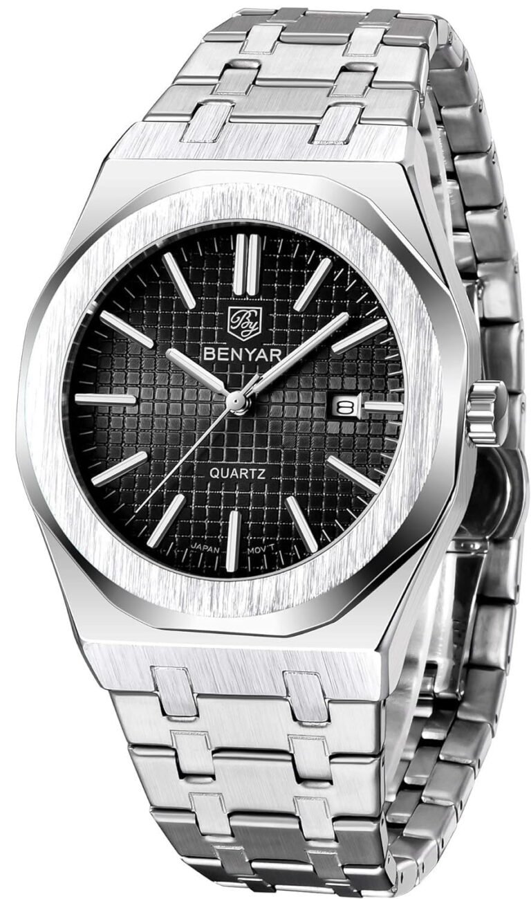 BENYAR Business Casual Silver Stainless Steel Date Display Analog Watch for Men